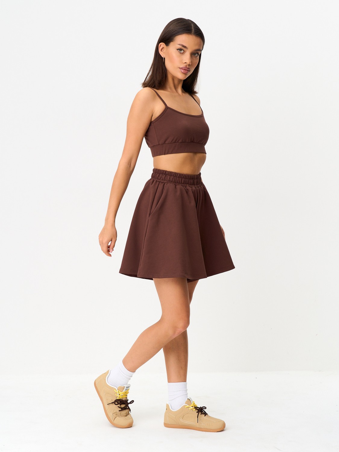 Стильный женский костюм из футера — идеальное сочетание комфорта и модного дизайна для повседневной носки. Этот комплект включает  топ и  шорты, выполненные из мягкого хлопкового футера (95% хлопок, 5% эластан), который приятен к телу, не вызывает раздражений и отлично держит форму. Ткань слегка тянется, обеспечивая посадку по фигуре без дискомфорта. Костюм отлично подойдёт для дома, отдыха, утренней зарядки, занятий йогой или прогулок. Универсальный крой и лаконичный дизайн делают его легко комбинируемым — можно носить как комплект или раздельно с другими вещами. Топ с круглым вырезом и короткими рукавами подчёркивает естественную женственность, а шорты на резинке обеспечивают максимальный комфорт. Костюм женский из футера представлен в актуальных цветах: чёрный, серый меланж, коричневый — подойдёт на каждый день и для любого возраста. Легко стирается, не линяет, не деформируется после стирок. Идеальный выбор для тех, кто ценит удобство, качество и стиль. Костюм женский топ и шорты — база вашего повседневного гардероба! Закажите сейчас и почувствуйте настоящий комфорт.