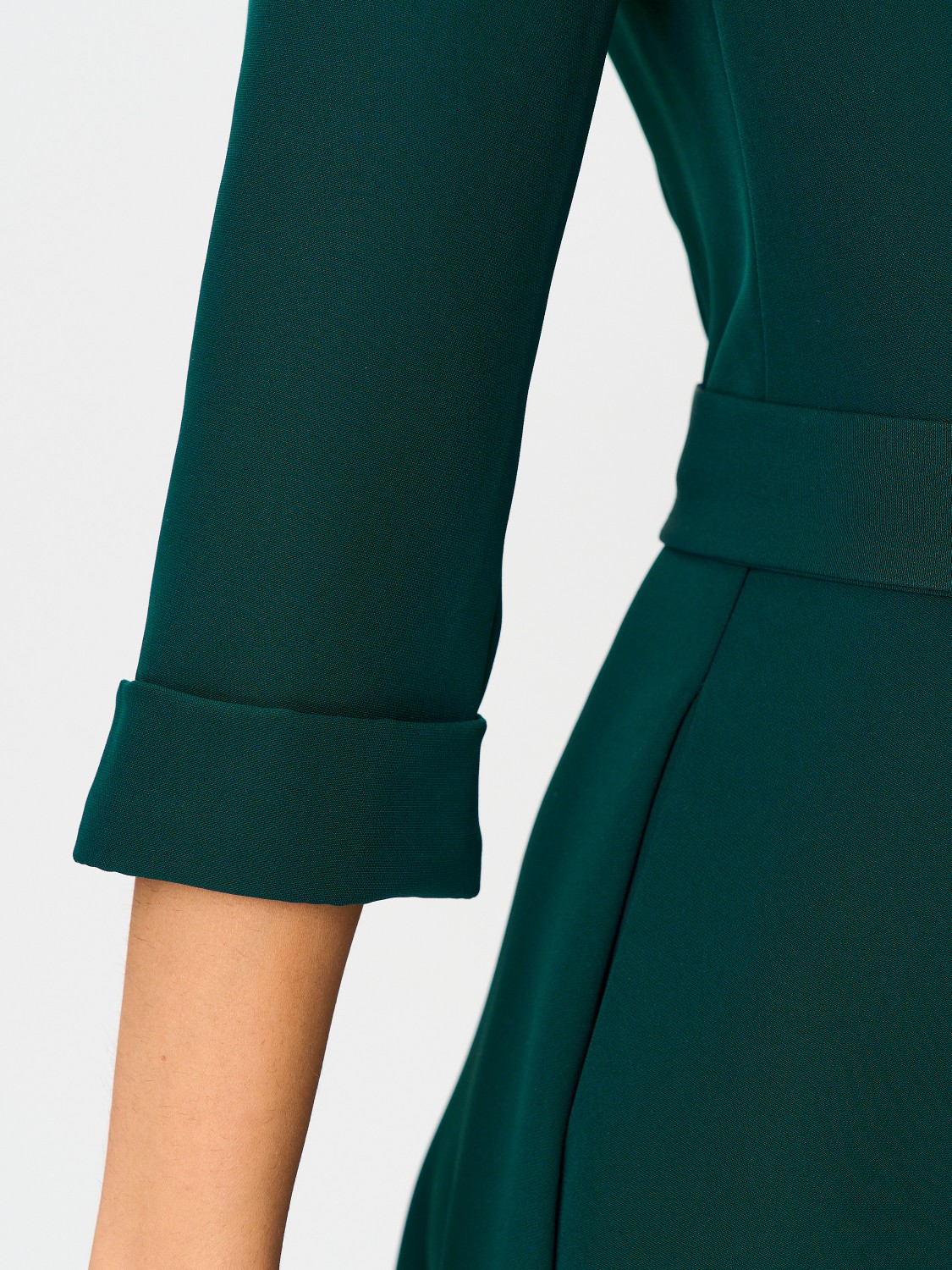 Стильное платье - пиджак миди с двубортным кроем и поясом — идеальное решение для тех, кто ценит элегантность и комфорт. Платье офисное универсального фасона на запах с отложным воротником и длинными рукавами подчёркивает фигуру, визуально стройнит и подходит для любого типа телосложения. Плотная ткань женского платья с добавлением эластана не просвечивает, устойчива к деформации и отлично держит форму. Высокий разрез спереди добавляет образу женственности и лёгкости в движении. Пояс на талии позволяет подчеркнуть силуэт и создать выразительный акцент. Длина миди до середины икры делает модель уместной в офисе, на деловой встрече, свадьбе в качестве гостевой одежды или вечернем выходе. Легко комбинируется с туфлями, балетками, кроссовками — подходит для создания образов в стиле smart casual, офисный шик или уличная мода. Универсальный крой и качественный крой делают это платье must-have в современном гардеробе.
