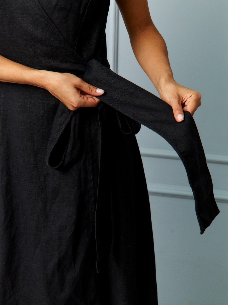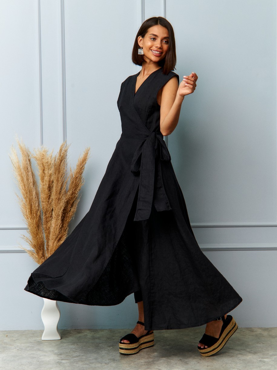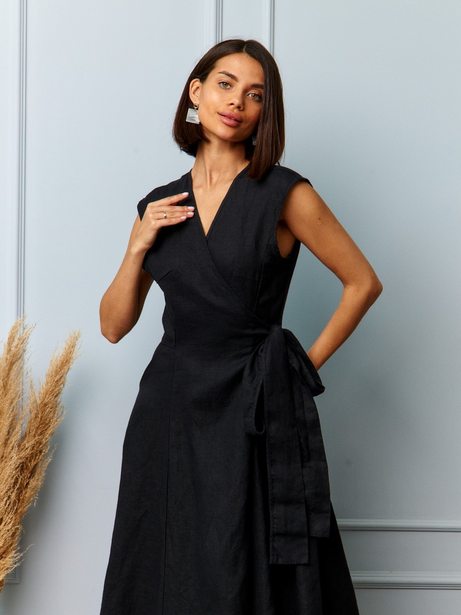 Льняное платье - это идеальный вариант для любого случая, сочетающее в себе стиль и комфорт. Крой с запахом идеально облегает фигуру, подчёркивая талию, не сковывая движений. Пояс-завязка позволяет регулировать посадку, делая каждое платье уникальным — как будто сшитым специально под вас. Высокий разрез спереди добавляет изящества и движения, а прямой или слегка расклешённый силуэт — универсальности. Материал — 100% натуральный лён — это основа комфорта и устойчивой моды. Он дышит, охлаждает тело, не вызывает раздражения и становится мягче с каждым ношением. Это ткань, которая живёт с вами, адаптируется, становится частью вашего образа.