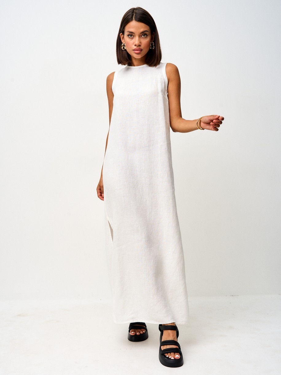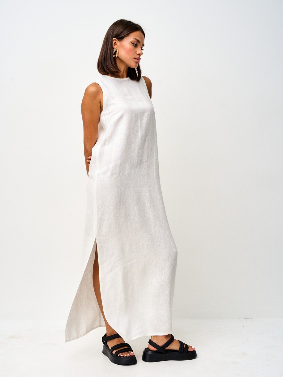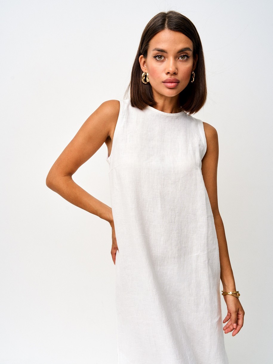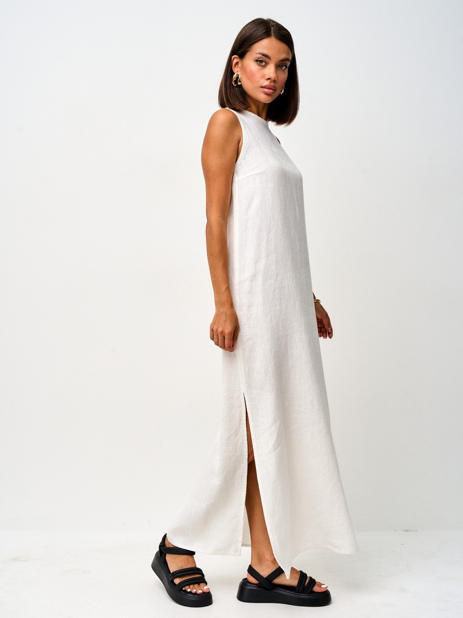 Это платье — воплощение утончённого минимализма: без лишних деталей, но с невероятной силой формы. Выполненное из 100% натурального льна, оно дарит ощущение прохлады и лёгкости даже в жаркие дни.