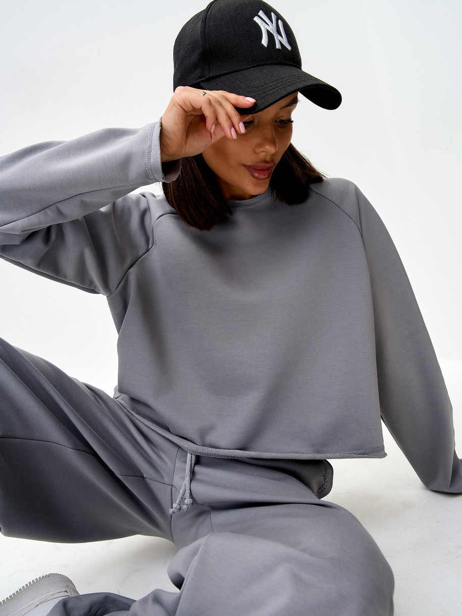 Укороченный свитшот ANNAMAX — идеальный выбор для современных женщин и девушек, ценящих стиль и комфорт. Изготовленный из качественного футера трехнитки, он обеспечивает тепло и уют в любое время года. Дизайнерский свитшот с необработанным краем отлично подходит как для спортивных, так и для домашних образов. Однотонный нейтральный цвет позволяет легко комбинировать его с различной одеждой, создавая модные луки без лишних усилий.